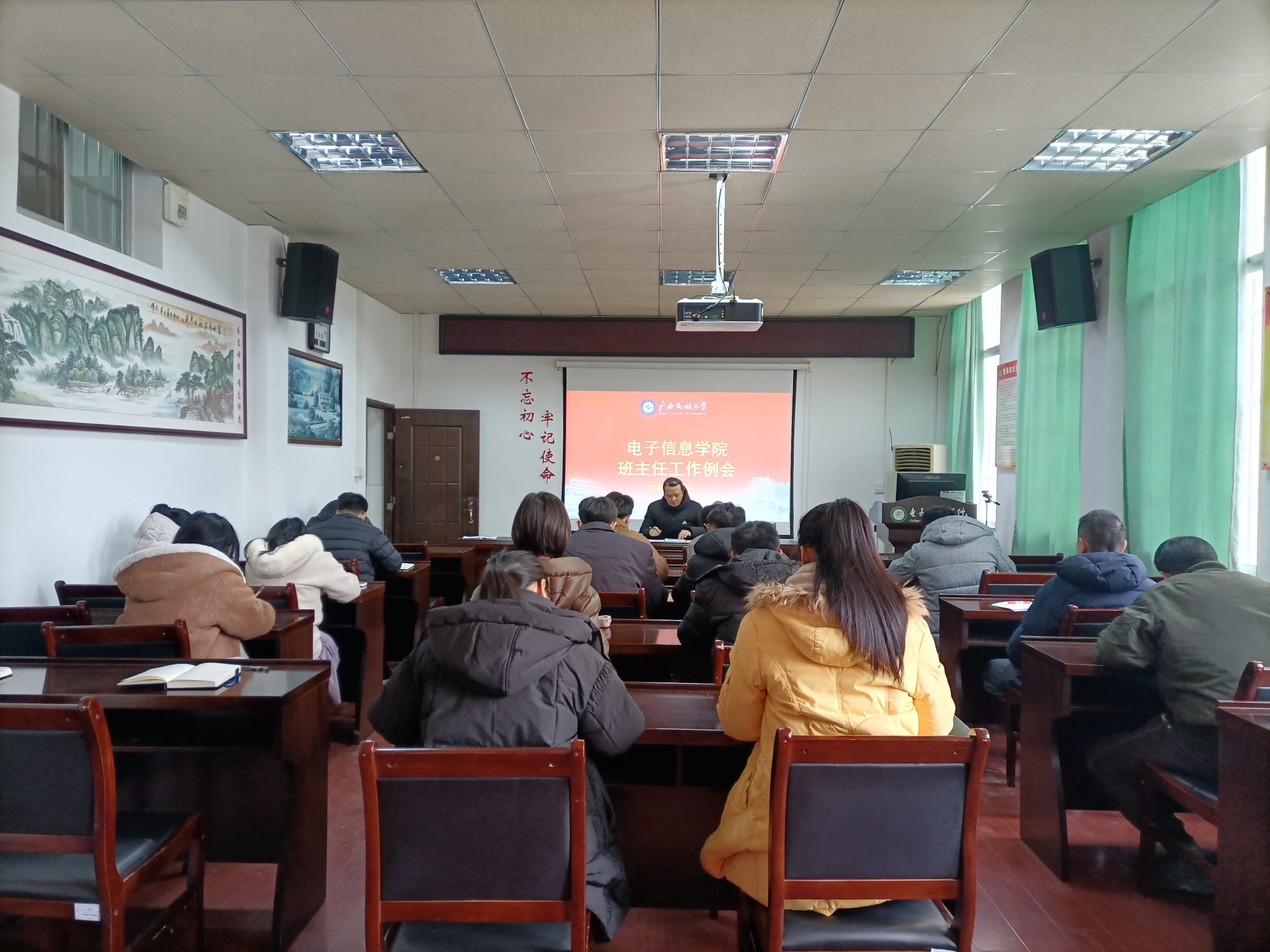 为做好新学期学生工作,明确班主任工作重点,3月1日下午,电子信息学院在博识楼215会议室召开新学期班主任工作例会。全体班主任参会,学院党委副书记罗少科主持会议。