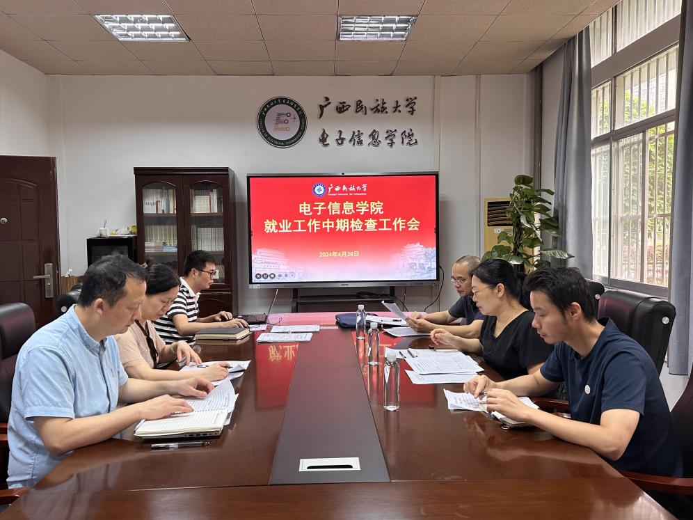 为了进一步推进毕业生高质量充分就业,做好2024届毕业生就业工作,4月28日,研究生院副院长郑慧,校督查员郑锡伟,招生就业处陈本兴一行在博识楼218室举行电子信息学院2024届毕业生就业工作中期检查会。学院党委副书记、院长罗丽平,党委副书记、纪委书记罗少科,辅导员邱银强参加此次会议。会议由罗少科主持。