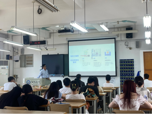 会上,公司代表鲍经华向在座学生介绍了公司基本情况、薪资构成与福利以及岗位的基本要求等,他热情邀请同学们加入公司并希望同学们在工作岗位上能积累工作经验以及提升专业工作能力。