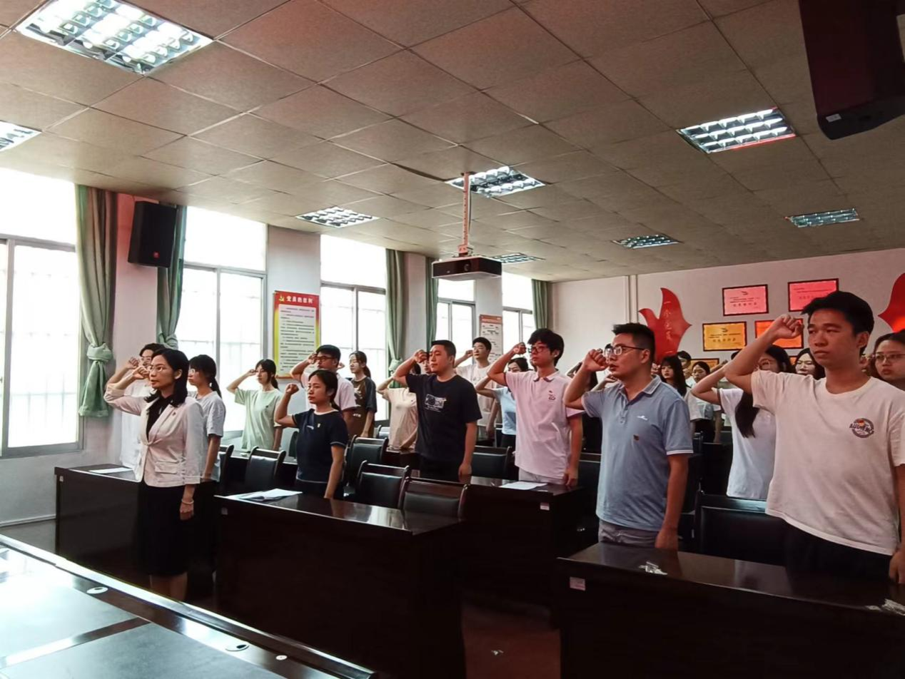 6月27日上午,电子信息学院党委在博识楼215室举行2024年上半年新发展党员入党宣誓暨重温入党誓词活动,学院党委书记张婧、学院各党支部书记、支委及2024年上半年新发展党员参加活动。仪式由本科生第一党支部书记梁翠凤主持。