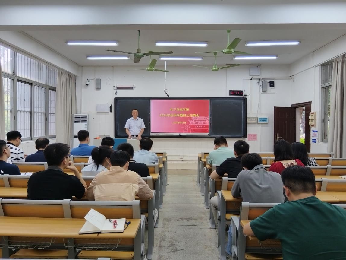 为充分发挥班主任队伍在学生思政教育、日常管理方面的作用,9月5日上午,电子信息学院在校友楼105室召开2024年秋季学期班主任例会,全体班主任、辅导员参加会议。本次会议由学院党委副书记、纪委书记罗少科主持。