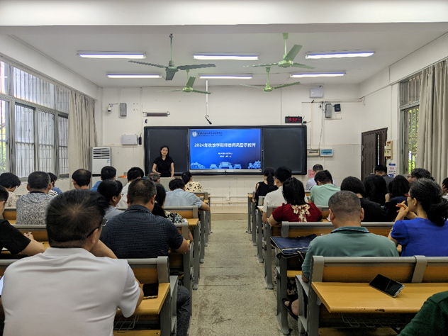 为进一步加强我院教师队伍师德师风和纪律作风建设,弘扬新风正气,凝聚师德正能量。9月5日上午,电子信息学院在校友楼105召开师德师风培训专题会。本次专题会由学院党委书记张婧主持,学院党委副书记、院长罗丽平、学院党委副书记、纪委书记罗少科、副院长文春明、卢振坤和全体教职工参加。