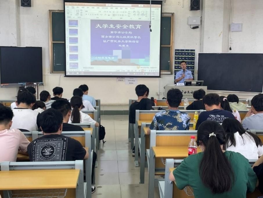 9月27日上午,电子信息学院在学友楼602室举行防电信网络诈骗知识讲座。南宁市公安局西乡塘分局三级高级警长、驻挂广西民族大学联络官韦振豪为我院师生作防范电信网络诈骗宣讲,学院辅导员邱银强以及各年级学生代表200余人参加。