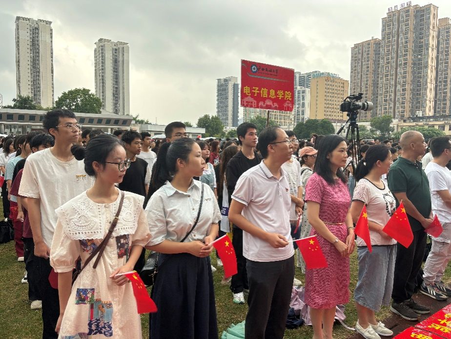 此次升旗仪式不仅是一次爱国主义教育的生动实践,更是对新中国75年光辉历程的一次深情回望与美好祝愿,激励着每一位电子信息学院的师生不忘初心,砥砺前行,共同为祖国书写更加辉煌的明天。(初审:李旭 复审:梁翠凤 终审:罗少科)