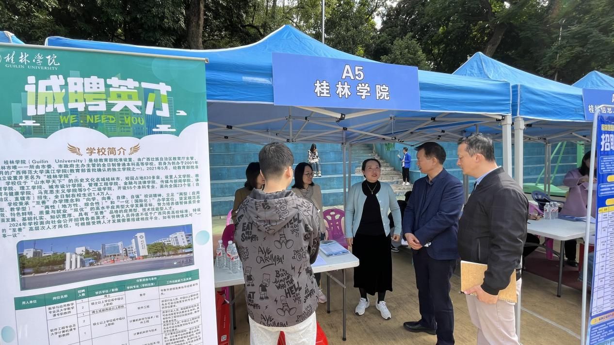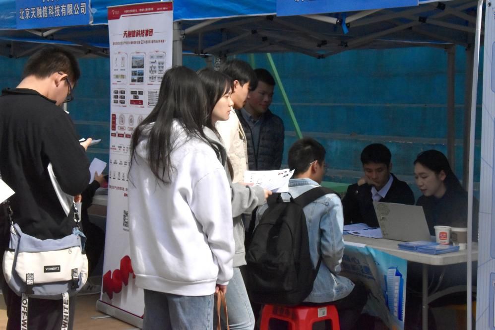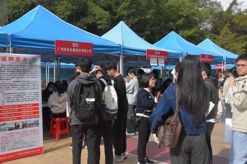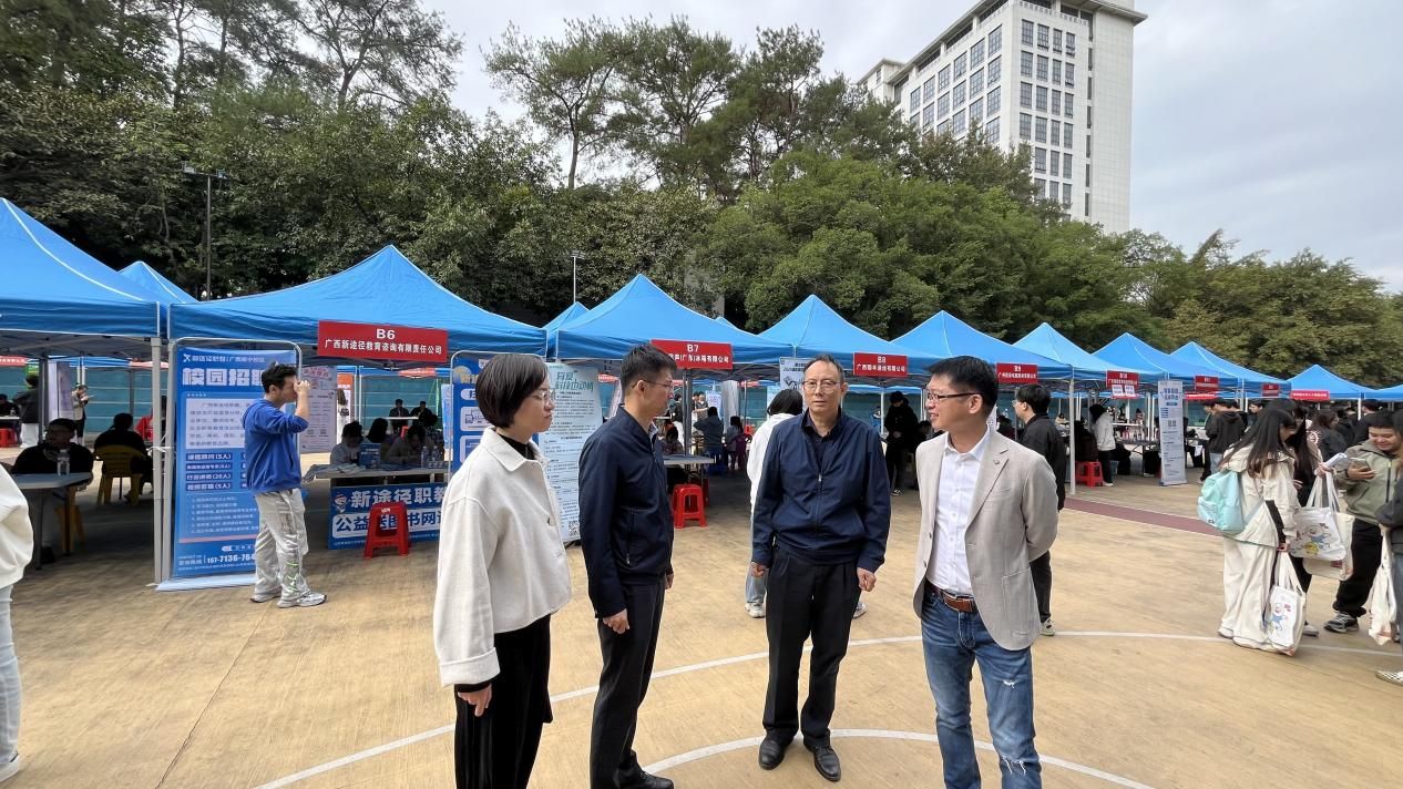 11月28日,电子信息学院联合人工智能学院、数学与物理学院于广西民族大学灯光球场举办广西民族大学理工类专业 2025 届毕业生联合招聘会。