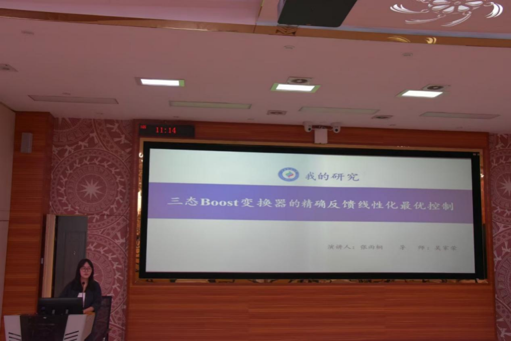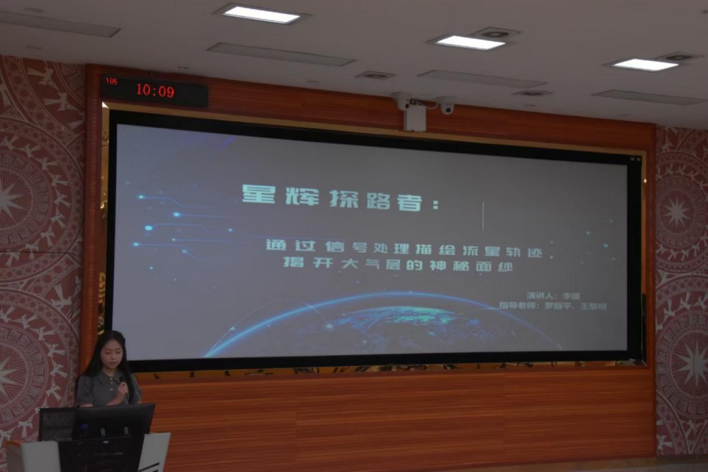 在本次学术交流活动中,李媛、邹展卓、张逸俊、张雨桐、王宝银五位同学依次登台,带来了精彩的学术报告。李媛同学聚焦于信号处理技术在流星轨迹描绘方面的应用,通过创新的研究方法,致力于揭开大气层的神秘面纱;邹展卓同学则另辟蹊径,利用天线参数巧妙揭示风的踪迹,探索无形却充满力量的自然元素;张逸俊同学围绕基于多源特征融合的环肽膜通透性预测研究,深入阐述其在生物医学领域的重要意义与前沿进展;张雨桐同学对三态 Boost 变换器的精确反馈线性化最优控制展开详细解析,展现了其在电力电子技术领域的深入探索与创新思维;王宝银同学分享的蔗芽质量 360°动态实时智能检测及自动筛选系统研究,为农业智能化发展提供了崭新的思路与技术支撑。