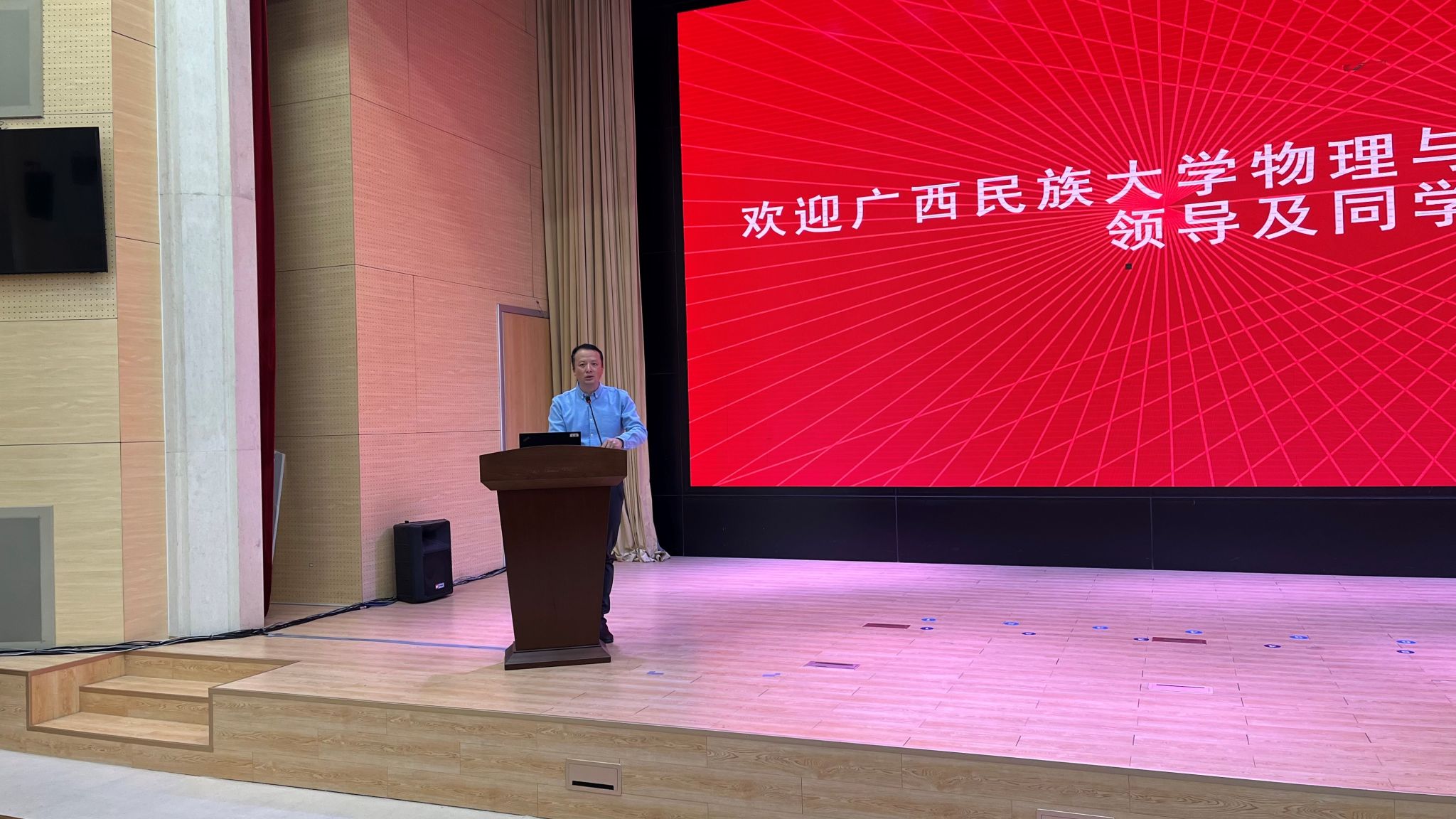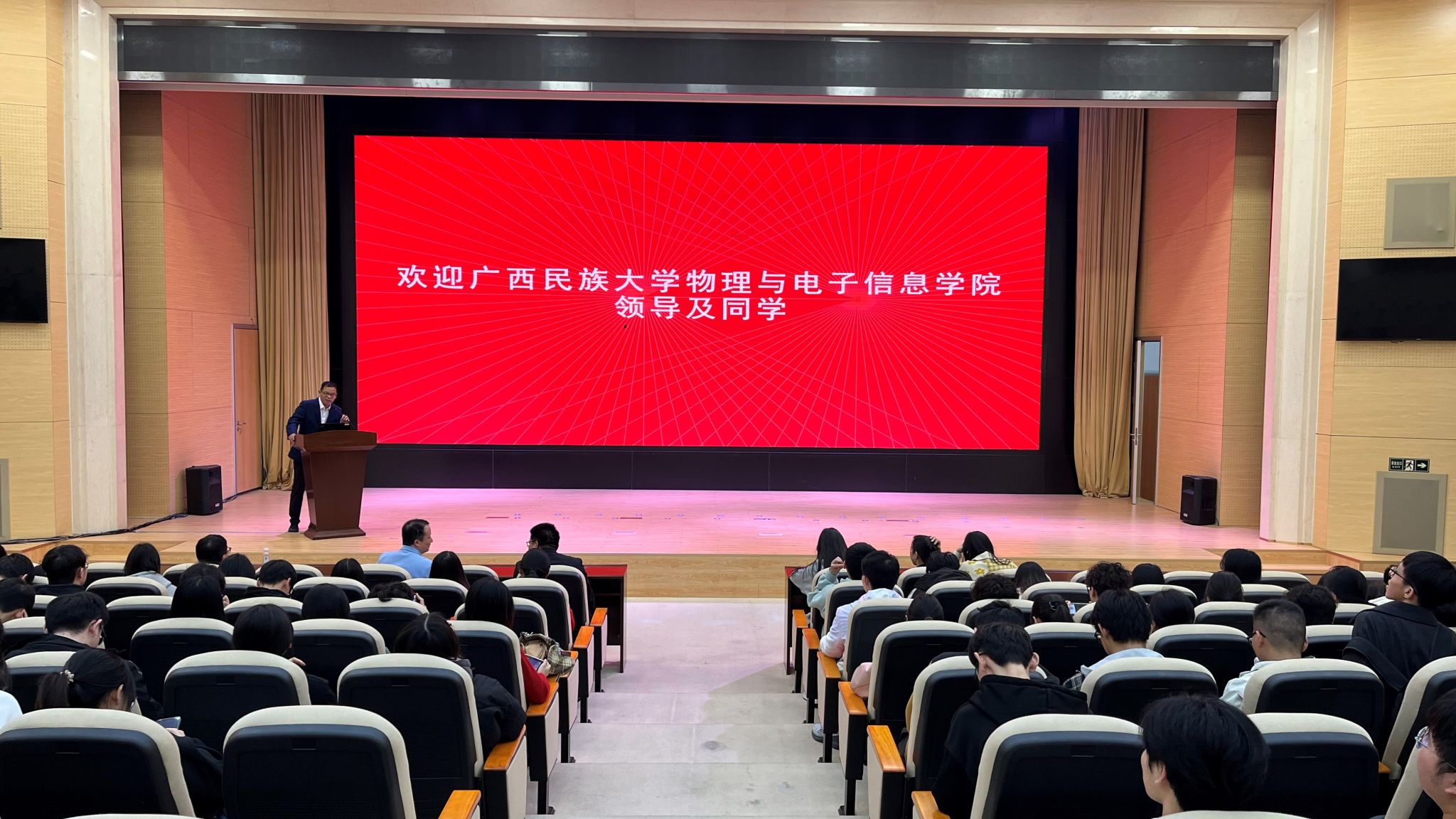 参观结束后,中国联通南宁市分公司副总经理陆华宁主持校企合作交流会暨招聘宣讲会。会上,陆华宁向师生代表讲解中国联通的发展历程、业务主要版块和近年广西民族大学毕业生入职中国联通南宁市分公司的情况。他谈到,中国联通的业务与电子信息学院的专业高度契合,希望能够在科技创新、实习实践等多个方面进行深度融合,深化校企合作,促进行业发展。