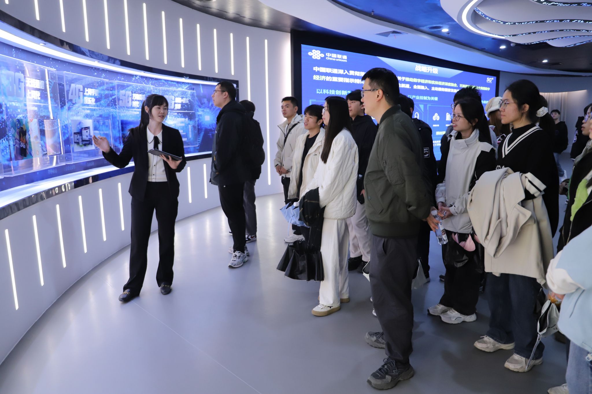 校园经理黄胜立对电子信息学院师生的到来表示欢迎,并带领着师生一行人前往中国联通智家实训室、中国联通东盟云数据中心、中国联通智慧展厅进行参观。