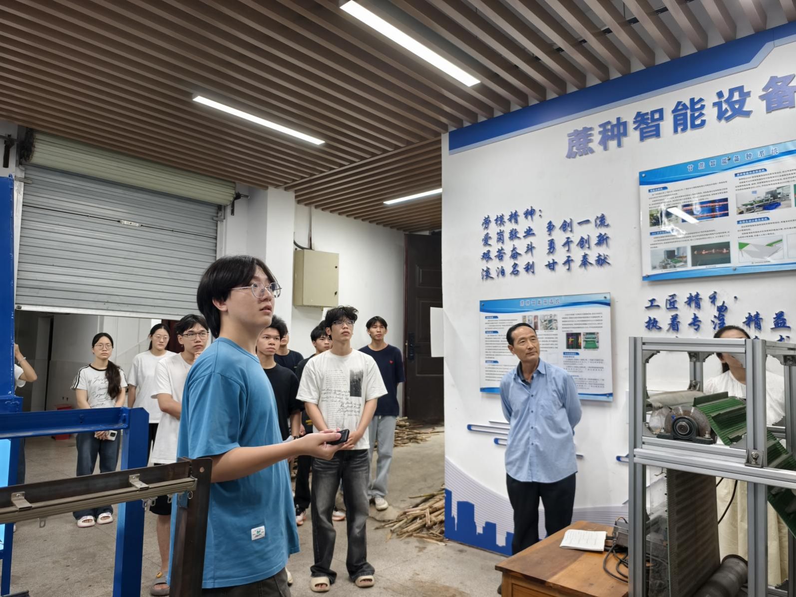 活动由李尚平教授领衔的甘蔗智能装备研发团队主讲。团队系统展示了自主研发的甘蔗智能备种生产线,包括甘蔗智能切种机、蔗种智能快速筛选机、360°蔗芽智能筛选机等核心设备。通过现场演示,团队生动呈现了智能识别、精准切种、质量检测等关键技术环节,完整展现了甘蔗智能机械化生产的全流程。